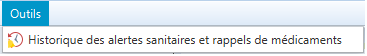 Le menu ‘Outils’ / ‘Historique des alertes sanitaires et rappels de médicaments’ permet de consulter la liste de tous les messages d’alerte sanitaire ou de rappel de lot.